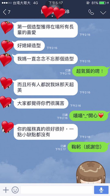懿庭老師提供優質新娘秘書服務,我們有專業的團隊,能提供您韓式、美式、日式的新娘造型;貼心細心是我們的強項,熟悉婚禮流程讓您在婚禮當天只需要當最美麗的公主。