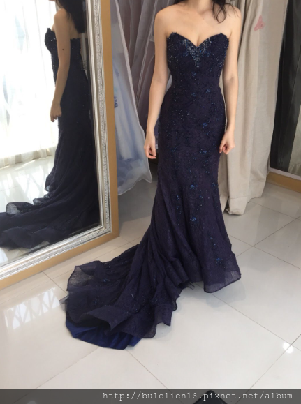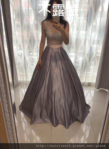 二進選擇銀紫色的緞面材質,但是禮服前一天沒有放好,竟然皺掉了!整個超敗筆!!