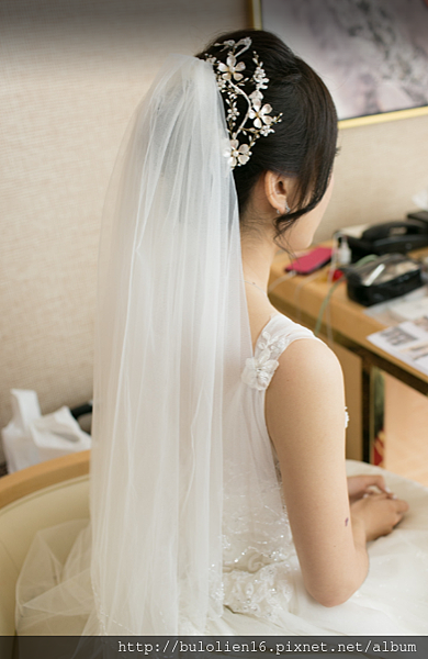 搭上頭紗,整體而言覺得蠻有新娘子的感覺,白紗就是要蓬裙啊~